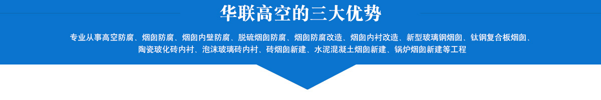 主要承接高空防腐、煙囪防腐、煙囪內(nèi)壁防腐、脫硫煙囪防腐、煙囪防腐改造、煙囪內(nèi)襯改造、新型玻璃鋼煙囪、鈦鋼復(fù)合板煙囪、陶瓷玻化磚內(nèi)襯、泡沫玻璃磚內(nèi)襯、磚煙囪新建、水泥混凝土煙囪新建、鍋爐煙囪新建、鈦鋼煙囪新建制作安裝等各項業(yè)務(wù)